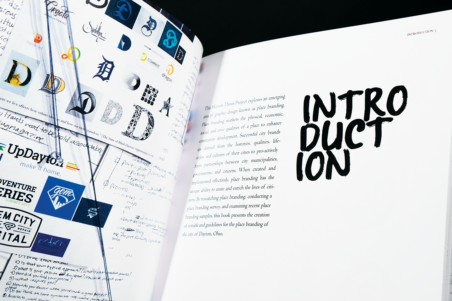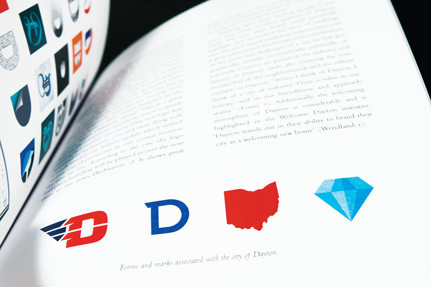 Independently conducted thesis research project presented in a 38 page book detailing the creation of a proposed place brand mark and guidelines for the city of Dayton, Ohio. Presented at UD's Celebration of the Arts, Berry Summer Thesis Institute Symposium, Honors Student Symposium, and the Brother Joseph W. Stander Symposium.